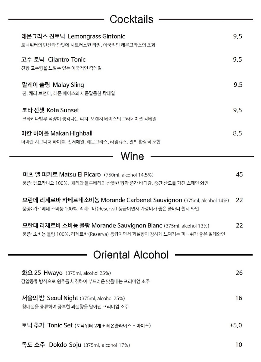 These dishes effortlessly complement the warm, inviting atmosphere, making The Makan well suited for casual gatherings, a comfortable solo meal, or relaxed dates around Songpa District. The menu’s easygoing nature invites guests to enjoy familiar flavors with a subtle sense of adventure, perfect for those seeking taste memories or new discoveries in Seoul.